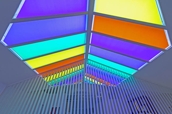 Daniel Buren Brisées par les reflets : les couleurs, travail in situ, Espace culturel Louis Vuitton, Venise, mai 2016. Détail ©DB-ADAGP Paris / Courtesy Louis Vuitton