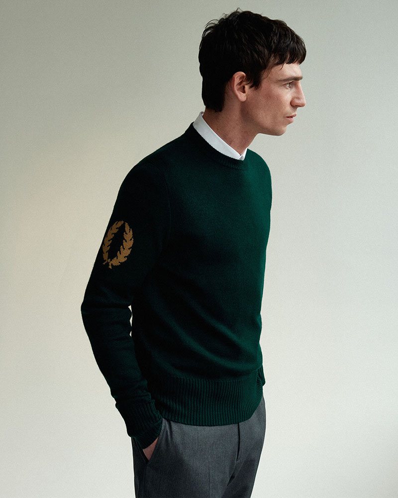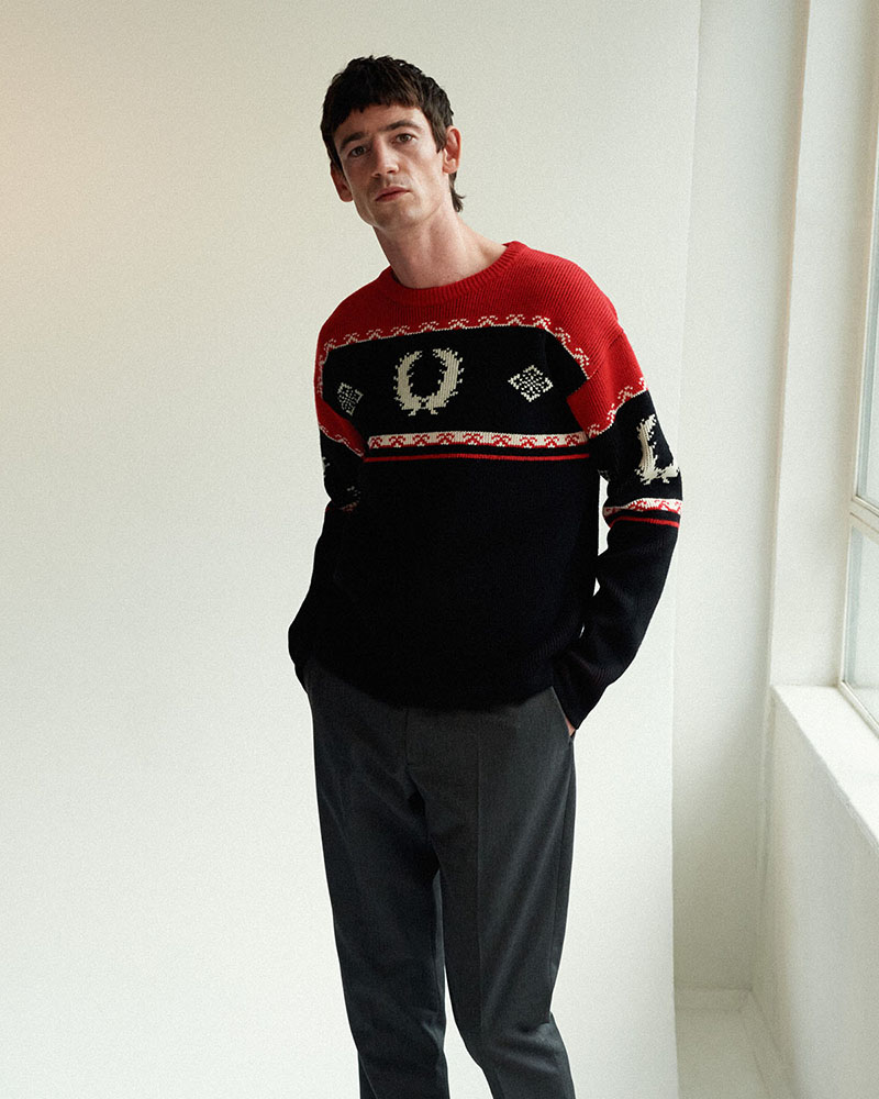 A este se unen otras prendas como el jersey de cuello redondo Fair Isle, muy popular entre el público tanto dentro como fuera de las competiciones. La nueva y mejorada versión de este clásico de Fred Perry viene con una estructura de punto más gruesa, una silueta oversized y un estampado de copos de nieve con la insignia del laurel.