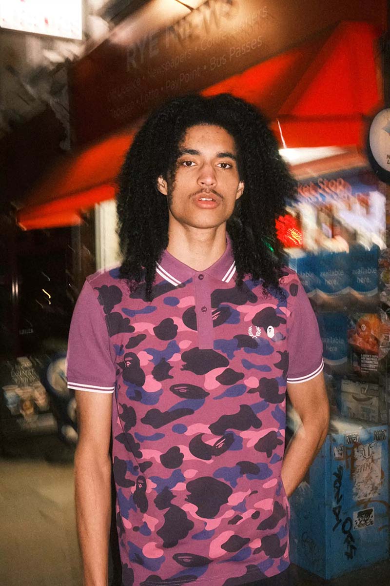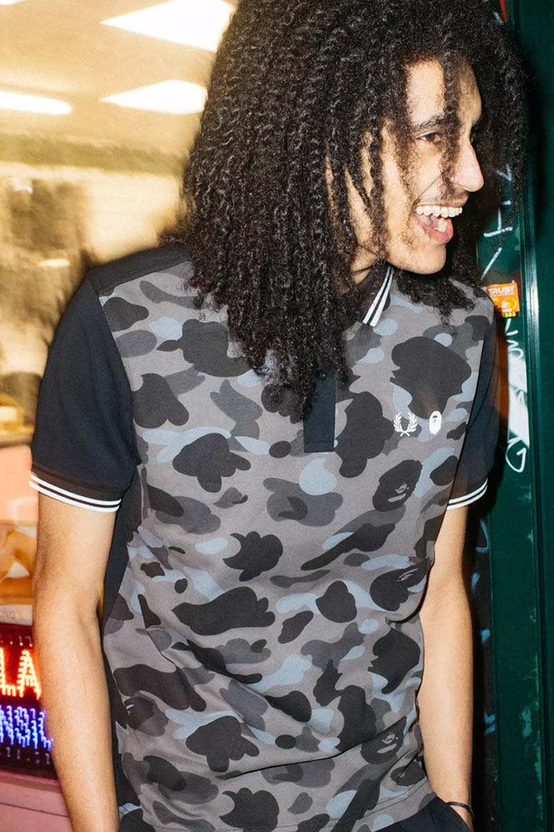 ¿Pueden los polos llevarse en un look de moda urbana? Claro que sí; la colaboración de Fred Perry con el camuflaje de A Bathing Ape lo confirma.