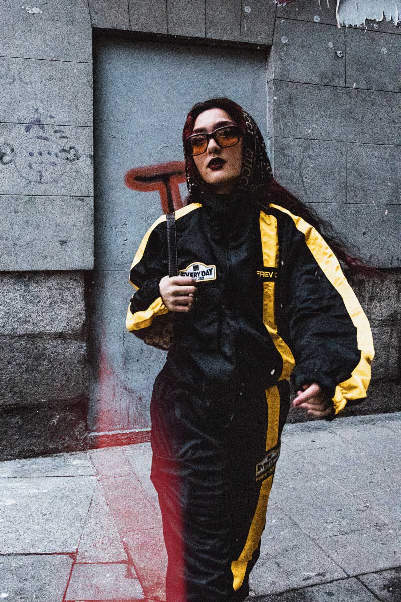 Fotografía: Nina Ghodsi / Edición: Nacho Martínez / Imagen superior: Carla Menendez posando con un chándal de la colección “They Are Looking For You”