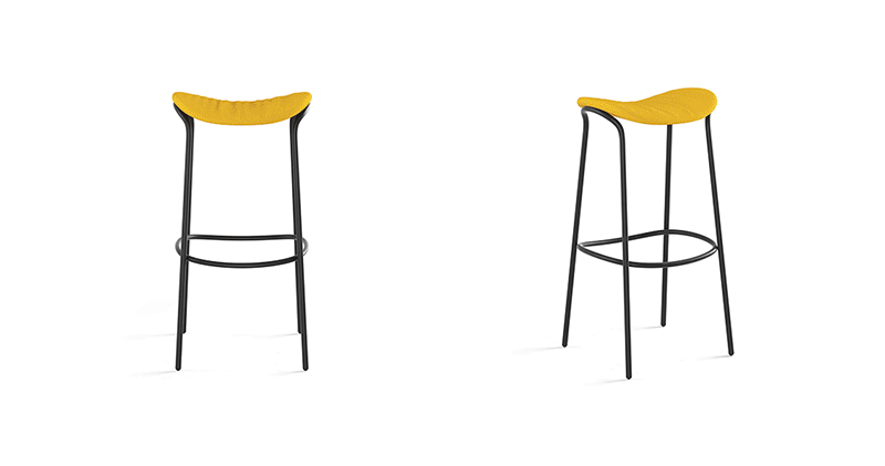 La colección arranca con cuatro piezas con un diseño minimal pero acogedor: silla de comedor, butaca, taburete de bar y taburete counter. Se articula como una construcción compuesta por dos piezas que, gracias a su forma, simula el gesto de dos manos abrazando y recogiendo al usuario. Este sistema facilita el reciclado independiente de cada uno de los materiales de la colección. La estructura es tubular de acero inoxidable lacado en blanco o en negro. Cuenta con un diseño orgánico que le aporta comodidad a la colección y está pensada para resistir el paso del tiempo.