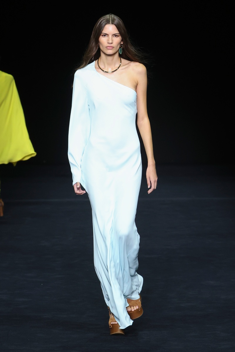 (Gabriela Andrada) Esto puede parecer fuera de lugar, pero espera, soy una lectora muy apasionada. Siempre me han gustado los grandes libros intelectuales, pero en los últimos meses he estado completamente obsesionada con las sagas de fantasía, como una adolescente. Cuando vi la colección de Twinset con sedas fluidas, delicadeza femenina y un aura etérea general, me hizo soñar con esos mundos de fantasía. Definitivamente, así es como espero que se vistan todos mis personajes, como me gustaría vestirme a mí. Me encantan especialmente los vestidos tipo capa en trompe l’oeil y las gasas translúcidas.