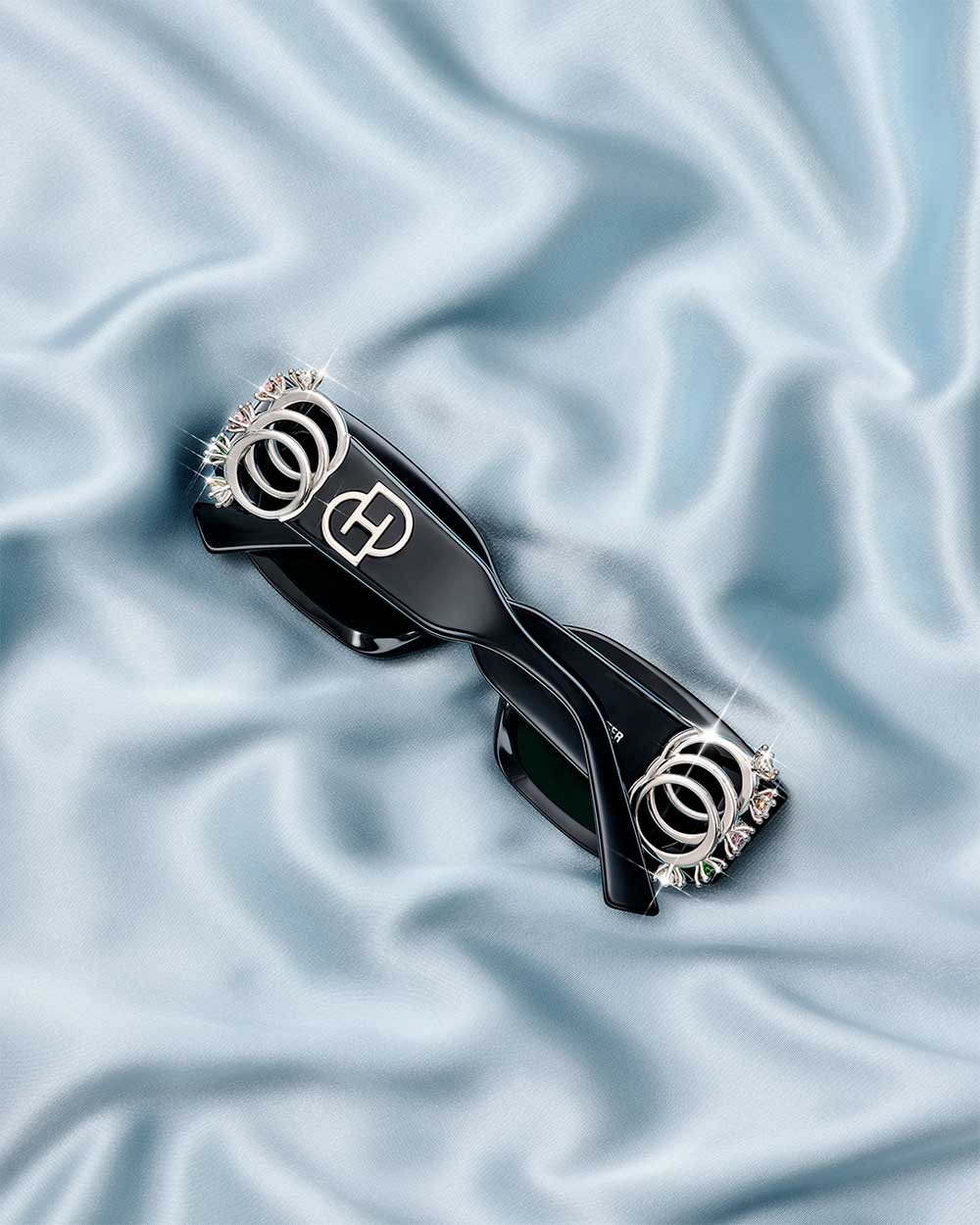Esta propuesta de gafas joya es un intento creativo por redefinir las joyas y las gafas de moda. La colección presenta gafas con varillas adornadas con anillos y pendientes, convirtiendo la montura misma en una pieza de joyería. Piezas que resumen a la perfección la identidad de cada una de las marcas, y se presentan en un original estuche propio de una joya. El paquete de colaboración, que reinterpretación elegantemente las identidades formales de ambas marcas, recuerda a las cajas de joyería.