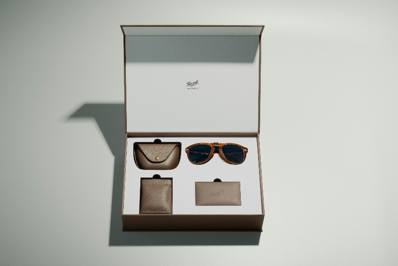 Persol, para complementar sus nuevas gafas de sol de película, ha diseñado una caja minimalista y sofisticada. En este estuche guardaremos las gafas, aunque también es posible llevarlas colgadas. La marca italiana ha incluido además un cordón a juego con las lentes y la funda. Ambos están hechos en piel y llevan el logotipo de Steve McQueen. Como detalle especial para los coleccionistas, se incluye un sobre de inspiración vintage que contiene valioso material de archivo sobre Steve McQueen.