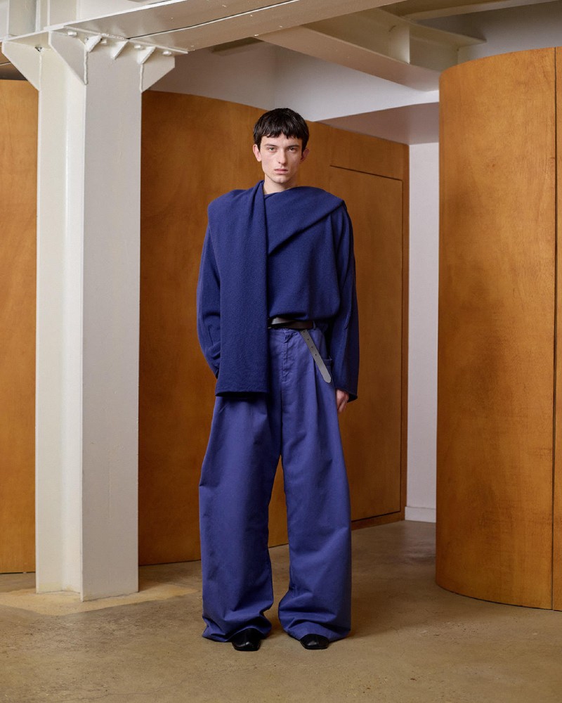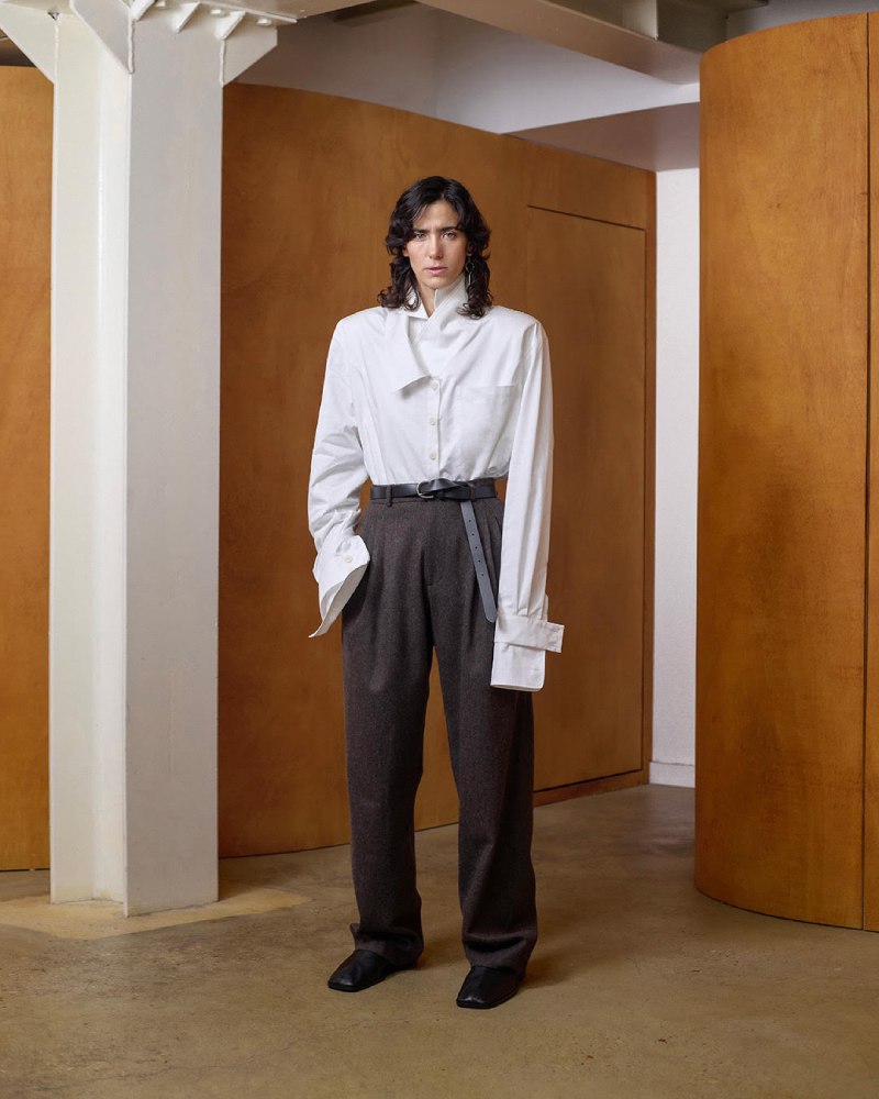 Gal Nell Dahan, tanto la firma como el diseñador, basa su lenguaje en el desafío de los cánones más estrictos y asentados del armario clásico. Esta reconceptualización de los pilares sartoriales se logra a través de un juego muy bien ejecutado de proporciones y volúmenes; pero también el valor de esta propuesta se encuentra en los materiales y la artesanía… y su colección debut confirma que tiene que estar en tu radar.