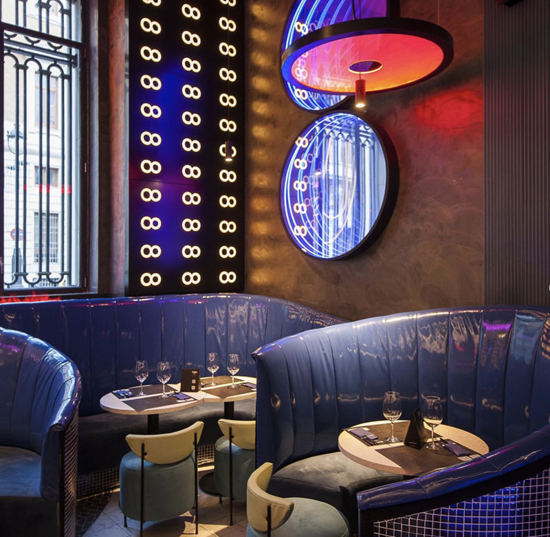 Imágenes superiores: 1) Decoración de The Eight via Instagram 2) Hamburguesa de wagyu via Galerías Canalejas