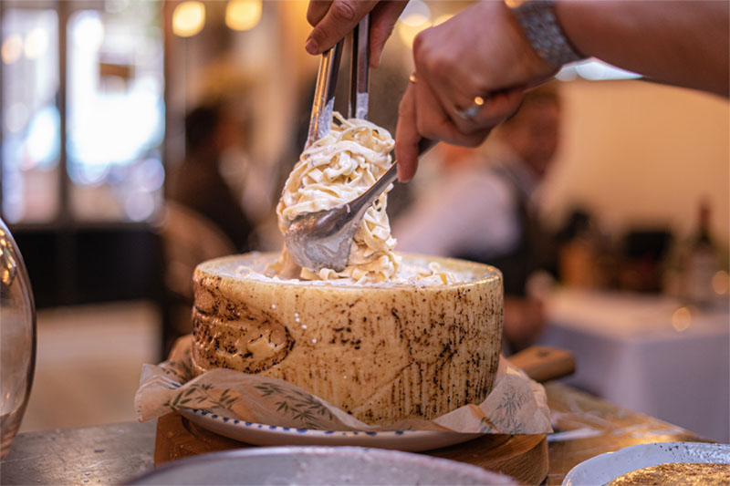 Ideado por el chef Moreno, reúne todos los clásicos de la cocina italiana. Con quesos y vinos de denominación italiana, foccacias esponjosas, pastas frescas y postres tan característicos como el tiramisú. Sus platos de pasta fresca son elaborados diariamente con Gnocchi de patata violeta con pesto de rúcula y tomates secos o su Linguini en salsa de limón, con gambas y crujiente de pistacho. Sin embargo, el plato estrella es la Tagliatelle al Gorgonzola e Noci Servite Nella Ruota di Parmigiano Reggiano di Vacche Rosse, un plato de pasta terminado al momento en frente del comensal en un enorme rulo de queso parmigiano. Cuenta con un precio por persona de 40€.
