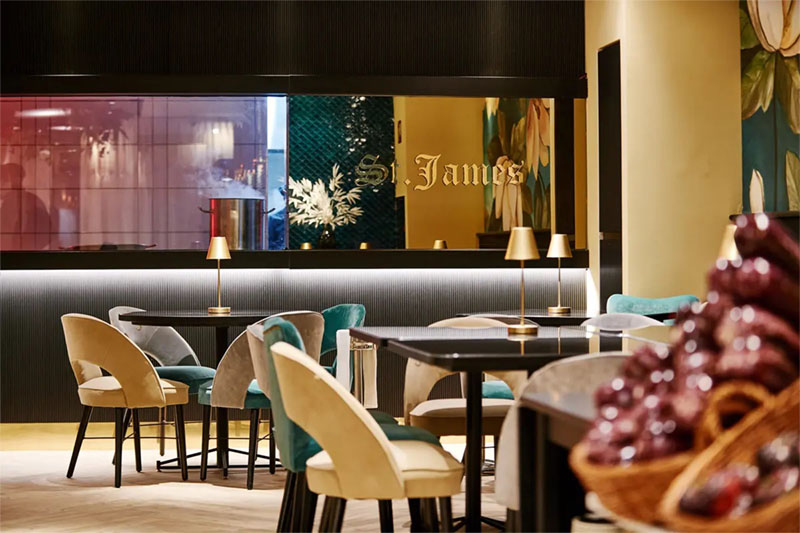 Imágenes superiores: 1) Salón principal de St. James 2)Paella de St. James via Galerías Canalejas