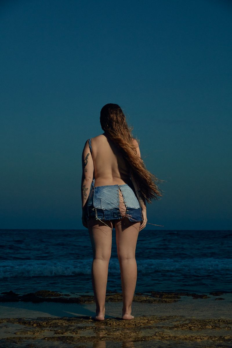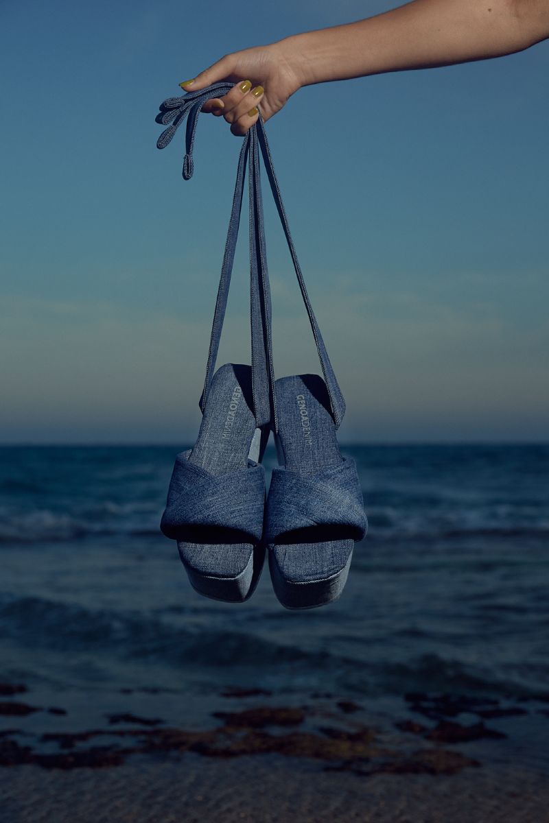 Además, también habéis sido capaces de crear una campaña/editorial muy pulida estéticamente. ¿Cómo generasteis esa escenografía? La estética y cómo se comunican los valores de Genoa Denim es muy importante para nosotras. El azul debía ser, evidentemente, un color dominante en la imagen. Gracias a la ubicación vemos todos los tonos azules que ofrece la naturaleza, como el cielo y sus cambios según la altura del sol, y el cambio del mar en sintonía. Tonos que también varían entre prendas vaqueras.