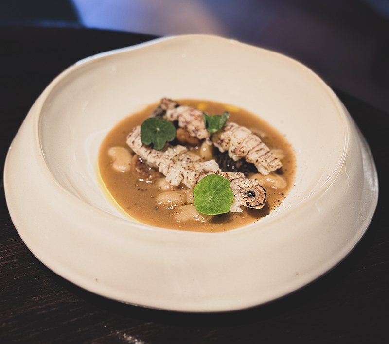 Otro rasgo que no pasa desapercibido en la cocina de Chunlin Yu, más allá del mestizaje de sabores, es la madurez. Con el Guiso de mongetes, galeras y colmenillas (21€) se despoja de las especias. Tan presentes en buena parte de sus platos, para llevarlo hacia sabores puros, reconocibles e intensos, un común denominador en el restaurante Ginnan en Barcelona