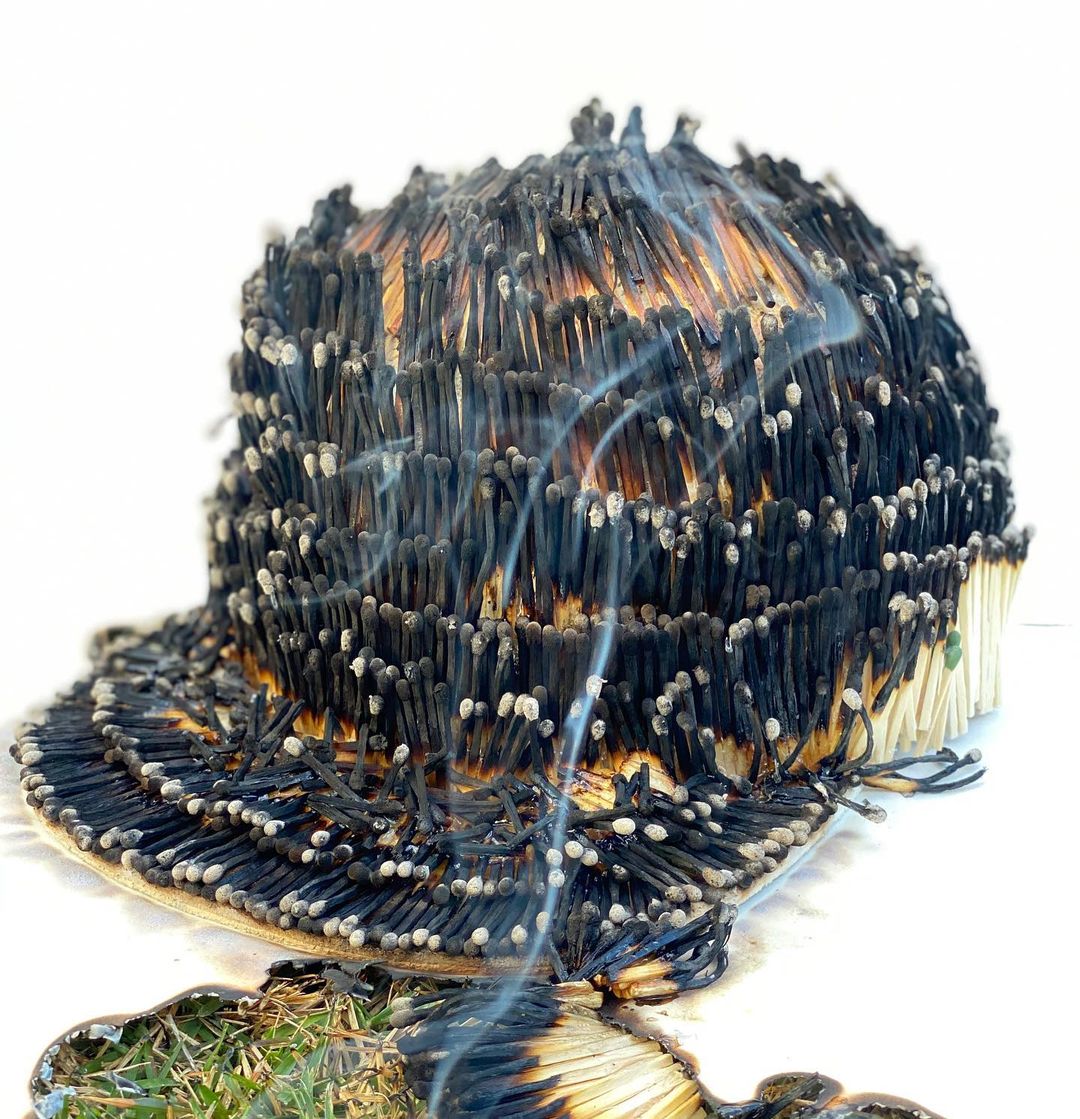 Y aunque reconoce que, en ese momento, las gorras no eran lo suyo en esos momentos, poco a poco fue especializándose y aprendiendo todas las técnicas necesarias para poder una hacer una gorra pro. Sus primeros proyectos eran totalmente personalizados. Por ejemplo, una serie de gorras hechas con el concepto upcycling, reciclando el uniforme de la segunda guerra mundial del abuelo de un amigo suyo. Y así hasta ahora, con un catálogo de cientos de gorras creativas y sombreros bucket con estampados increíbles. Y precios que oscilan entre los 45 y los 100 dólares en función de materiales. Pero lo que hace que la gente realmente se quite el sombrero ante las creaciones de Brian Downey, son los trabajos artísticos más conceptuales, donde la gorra es la obra y el concepto.