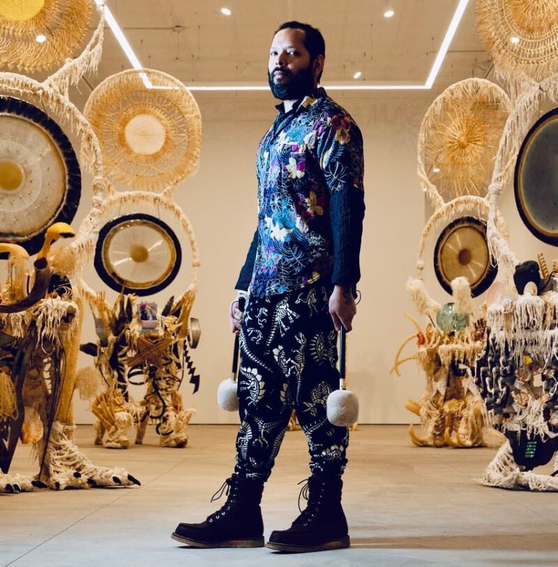 Guadalupe Maravilla combina el compromiso político con un poderoso lenguaje espiritual. Sus exvotos, requiems, sus totems que expulsan enfermedades y sus baños de sonidos sanadores entran en los espacios de arte. Su trabajo se ocupa de muchos de los grandes desafíos a los que se enfrenta nuestra sociedad en la actualidad. El artista no solo expresa sino que presenta y hace participativa su visión social con pasión y compromiso.
