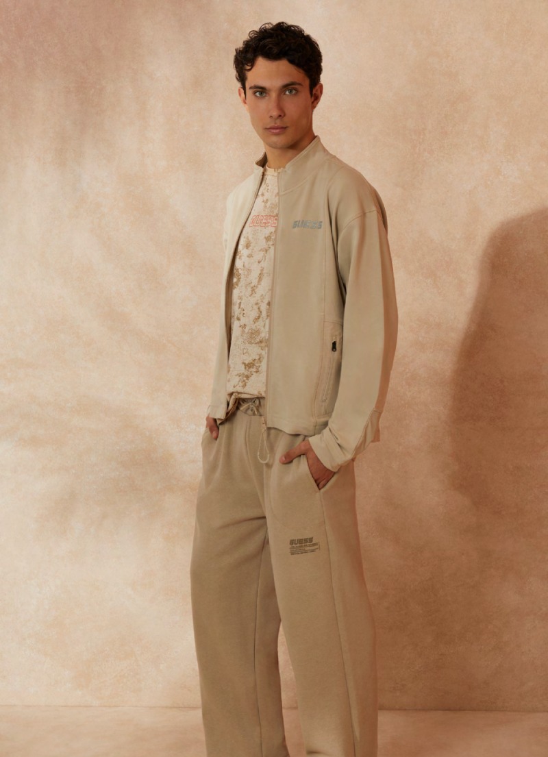 Las cosas no cambian demasiado en cuanto a las tendencias urbanas de SS25 para las colecciones masculinas de Guess. La apuesta general es por mezclar streetwear y sportswear en un solo empaque, y acentuarlo con acabados y gráficos renovados. Las estrellas de esta cápsula son los conjuntos de chándal tipo track nostálgicos que se decoran con ribetes y logos de tipografía noventera y ochentera. En la misma línea deportiva, tenemos también esenciales urbanos hechos con mesh y mucho branding; looks coordinados con acabados lavados y bleached y chándal de algodón de corte relajado. ¿Es básico? No: es esencialísimo.
