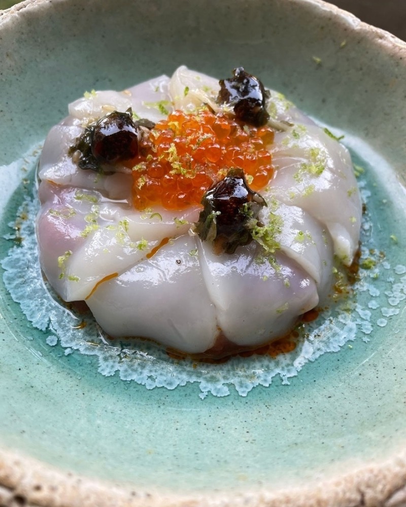 La primera parada fue Maralba. Ubicado en Almansa, es el único restaurante de Castilla y la Mancha que luce con orgullo dos estrellas Michelin. Se trata de un negocio local de cocina de autor que apuesta por la sostenibilidad por encima de todo. Cristina Díaz y Fran Martínez abrieron este restaurante con tan solo 24 años de edad con la intención de reivindicar el producto manchego. Se confiesan muy agradecidos a sus clientes, reconociendo con cierta humildad: “En la pandemia hemos seguido abriendo el restaurante gracias a nuestro público local”. Su concepto gastronómico es el siguiente: “comida manchega pero totalmente diferente”.
