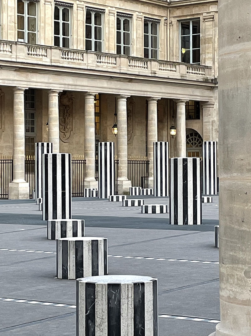 En el patio encontrarás la instalación/escultura de Daniel Buren, “las columnas de Buren”, artista conceptual francés que, con esta intervención, provocó un intenso debate sobre la integración del arte contemporáneo en los edificios históricos y que, sin embargo, ha terminado recibiendo el título de “Monumento Histórico”.