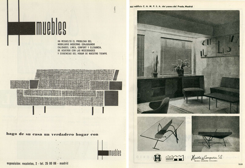 “La labor de modernización de la sociedad española llevada a cabo por la familia Huarte en diversos campos de la industria y de las artes, tuvo en la empresa de mobiliario moderno H Muebles uno de sus principales y más destacados impulsos. Nacida en 1958, H Muebles auspició la confluencia de intereses de destacados arquitectos, diseñadores y artistas que pusieron toda su creatividad al servicio del “arte del mueble”, concebido como parte integrante de la arquitectura moderna. Estas ideas se utilizaron en la presentación del catálogo que editaron sin que, para que nos hagamos una idea de la distancia que nos separa hoy en día de aquella época, fuera utilizada en ningún momento la palabra “diseño” o “diseñador”. La empresa proponía la colaboración de “técnicos y artistas” para lograr la misión de racionalización y renovación de las formas y sistemas de fabricación de los muebles en la anticuada cultura del franquismo.” Comentan los comisarios.
