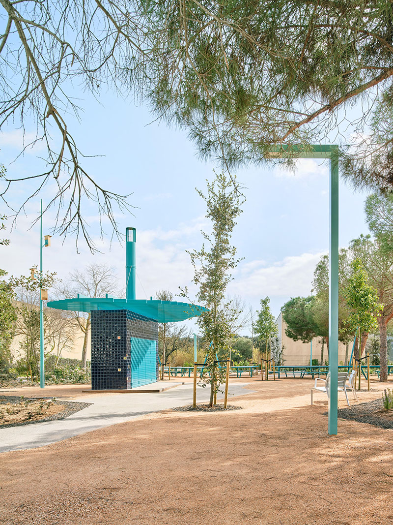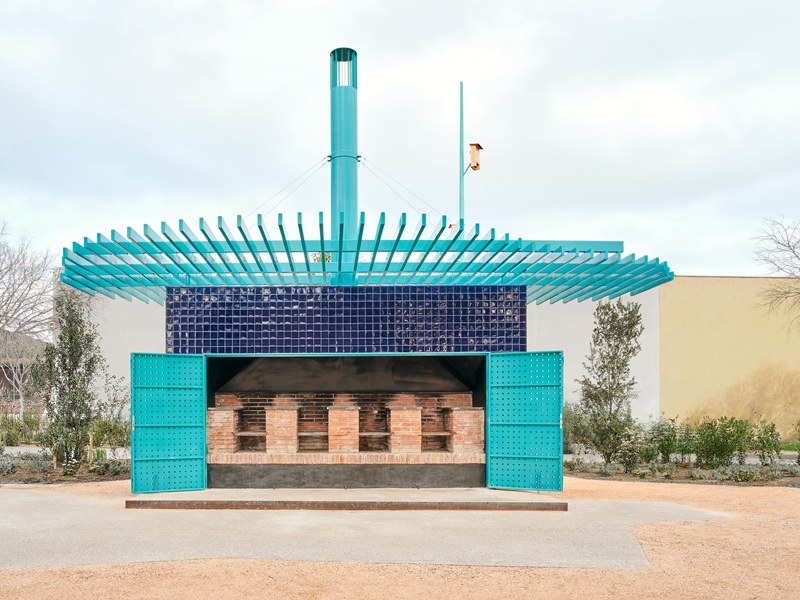 El acto de reunirse para comer se convierte en el mayor aliciente del diseño de este proyecto, que logra recuperar una barbacoa municipal en desuso y revitalizar el sentido de comunidad en un barrio industrial. “La comida colectiva ha sido siempre un pilar central en la generación de identidad comunitaria y en la cohesión social en nuestra cultura mediterránea. Cenas callejeras durante la fiesta mayor, ‘calçotadas’ de amigos en el frío de febrero, barbacoas domingueras o soplar las velas de un pastel con los compañeros de clase en un parque son ejemplos de generación comunitaria alrededor de la comida”, destacan los fundadores de h3o architects Adrià Orriols, Joan Gener y Miquel Ruiz.
