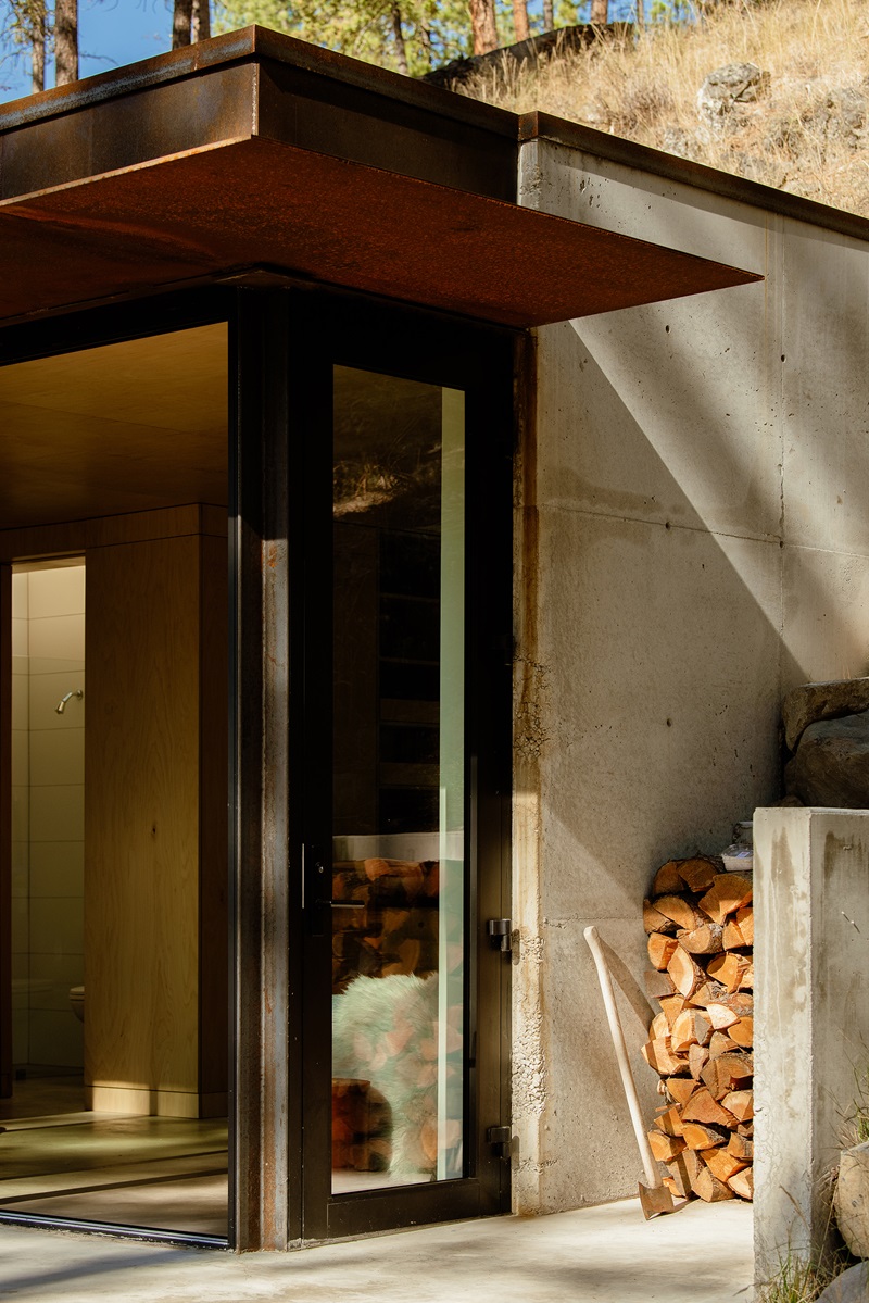 A pocas horas de la lluviosa Seattle, cerca de la frontera con Canadá, el estudio fundado por los arquitectos Jon Gentry y Aimée O’Carroll interviene en el paisaje virgen del valle de Methow para diseñar un práctico habitáculo de escala mínima. El cliente eligió este lugar, ubicado en la cima de la colina, por sus espectaculares vistas al bucólico paisaje, donde discurren las mansas aguas del río Methow. Y prevé encargar otra cabaña en un futuro próximo, que funcione como alojamiento para los amantes de las actividades al aire libre que deseen vivir la experiencia de pasar la noche en plena naturaleza.
