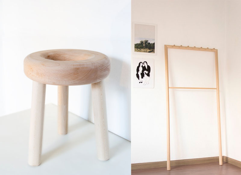 Imagenes superiores: Xilo Series (taburete y perchero) diseñados por Ángel Tausía