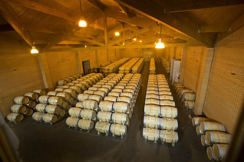 Arriba: la bodega posee un parque de 1.700 barricas de 225 litros cada una, 60% de roble francés y 40% de roble americano.