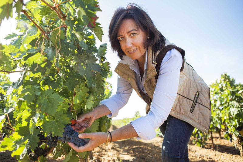 Arriba: Teresa Rodríguez, enóloga de bodgas Tarus