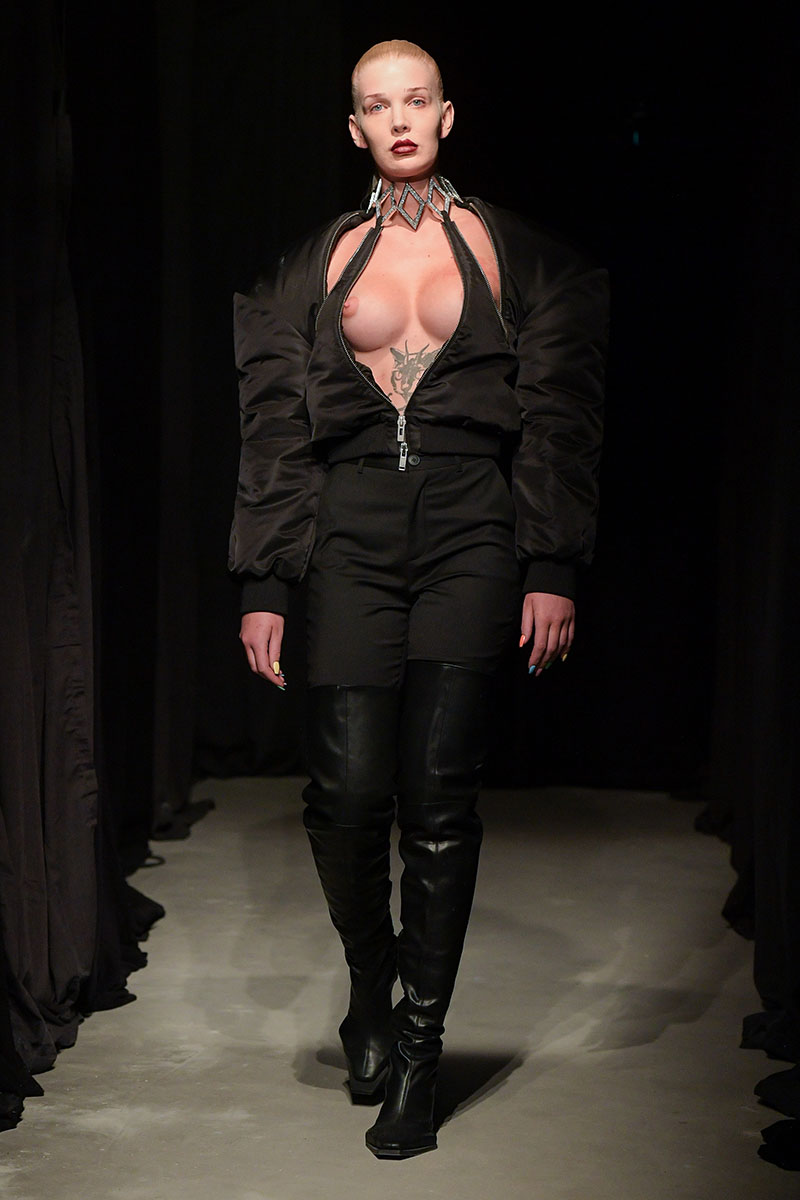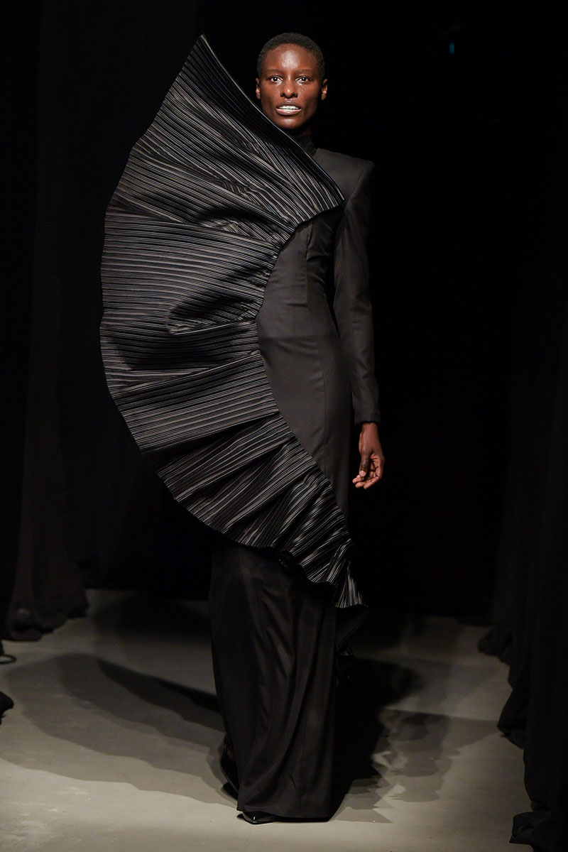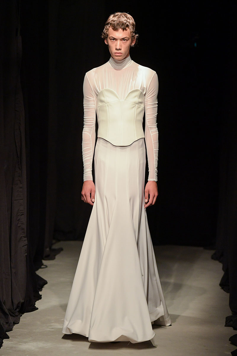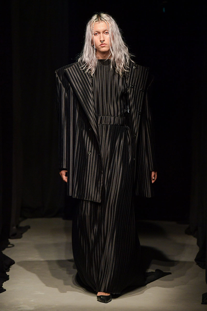 Los eclécticos diseños de esta entrega siguen una paleta de colores oscura y plana, siendo el negro, el blanco, el gris y el plata los únicos colores utilizados para la confección de las prendas de la nueva colección. Dos siluetas principales colonizan la colección: El vestido, y el traje. Por supuesto, a través de siluetas deformadas y deconstruidas, uno de los puntos fuertes del diseñador.
