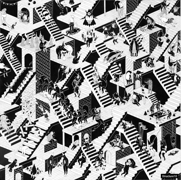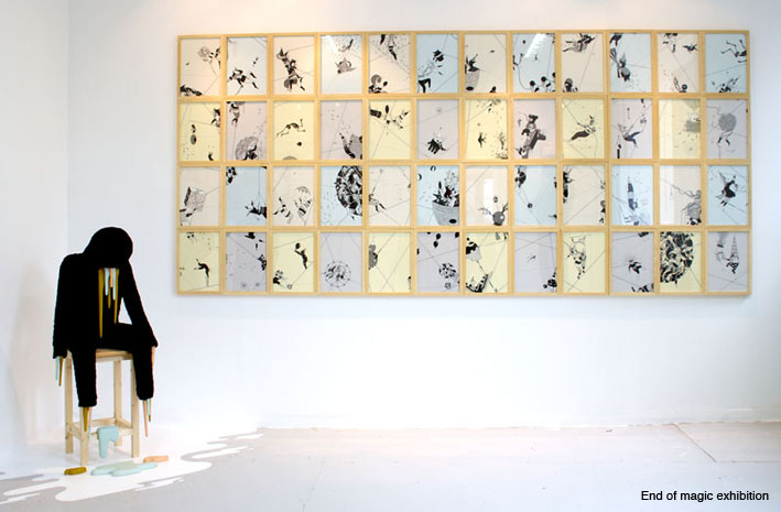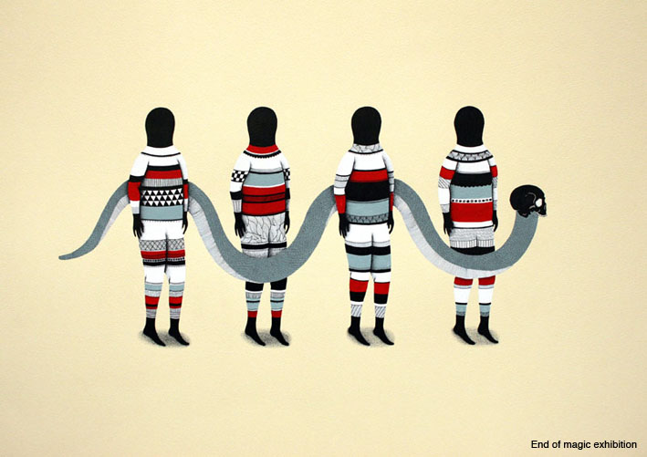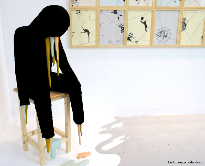 A finales de los años 90, tres jóvenes belgas: Jérôme Meynen, Antoine Detaille y François Dieltiens formaron “Hell’o Monsters”. El nombre del colectivo asocia y combina la palabra “Hell’O”, que contiene una connotación positiva y de bienvenida, con “hell” y “monsters”, que tradicionalmente se asocian con algo inquietante, sombrío y desconocido… Ambas palabras aluden a un mundo y a unos seres de carácter fantástico, creados por el ser humano para sembrar el miedo y, con ello, ejercer un control del pensamiento y las conductas del hombre. La dicotomía es una de las claves narrativas de su trabajo; donde las dualidades, el juego de conceptos y fuerzas son una constante más o menos evidente a lo largo de toda su obra, por choque o asociación.
