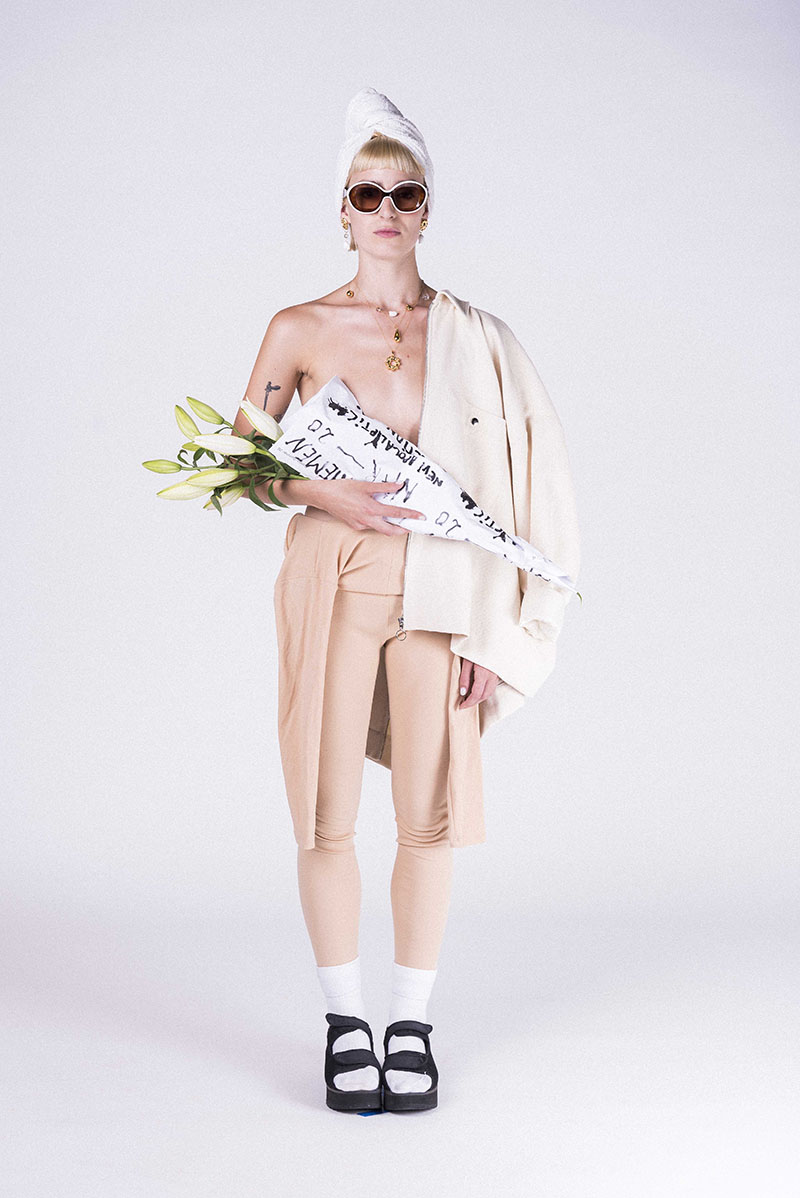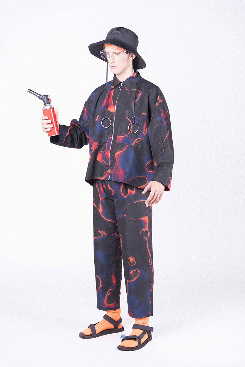 Entre la serie de objetos de joyería, textil y objetos del hogar encontramos desde bolsos, collares, pendientes y pañuelos hasta tops, pantalones, arneses y lamparas. Todos ellos unidos por un concepto común y una linea estética coherente que materializa el “nigredo” como concepto alquímico del que extraen ideas como la transmutación, la disolución, la quema y el cambio. Desde este concepto, HEMEN ha materializado su propio estampado para confeccionar algunas prendas agender, sintéticas y atemporales que se inspiran en los uniformes laborales.