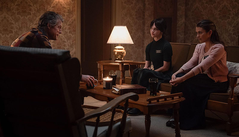 Cuando “Heretic” no era más que un proyecto, Hugh Grant se sinceró en una entrevista con estas palabras: “Me estoy aburriendo de interpretar papeles obvios que me encasillan”. No sólo se refería a sus comedias románticas, como “Love Actually” o “Notting Hill” (o la mencionada “Cuatro bodas”), sino también a sus brillantes trabajos como villano de opereta en “Dungeons and Dragons”, “Paddington 2” o “The Gentlemen: los señores de la Mafia”. Hacía ya de “malo” en estos films, pero era un “malo simpático” lleno de sentido del humor, y él quería otra cosa. La entrevista en la que hablaba de su aburrimiento llegó entonces a las manos de los mencionados Beck y Woods, que abordaron el guión de “Heretic” con Hugh Grant en mente, y se lo hicieron llegar nada más terminarlo. Y era justo lo que Grant estaba buscando.