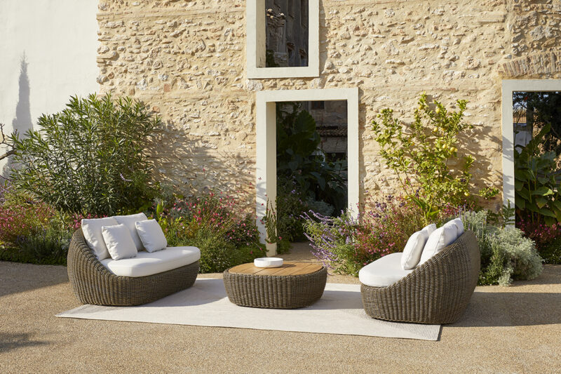 La amplísima colección Heritage se plantea con dos conceptos: Heritage Lineal y Heritage Contour, dos diseños que se pueden combinar entre sí. Mientras Heritage Lineal tiene un estilo más conservador, con formas rectas y geometrías equilibradas, el diseño de Heritage Contour apuesta por una silueta más suave y orgánica para construir una figura armoniosa pero más informal. Todas las piezas están fabricadas sobre una estructura de aluminio y tejidas con cuerpo exterior de fibra técnica. Las dos líneas de la colección se expresan en múltiples versiones de sofás, butacas, sillas, taburetes, mesas auxiliares, mesas de comedor, tumbonas y daybeds.