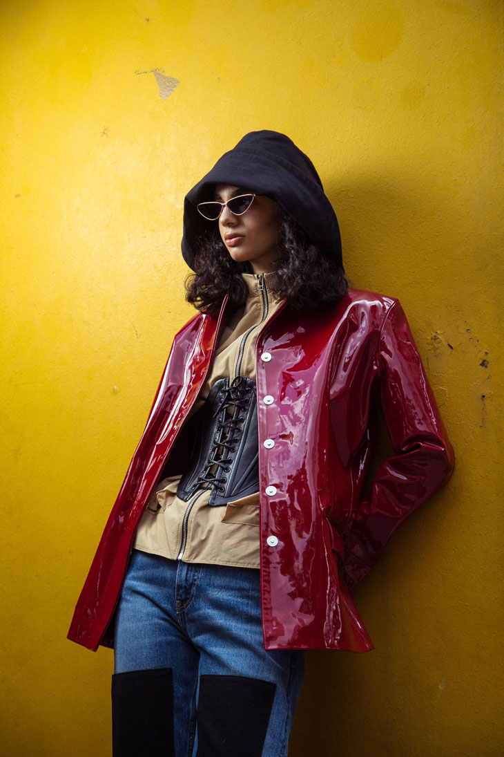 Fotos Arriba: Chaqueta Mancandy + Chaqueta roja RCano por Colectivo Diseño Mexicano + Sombrero Mancandy + Gafas Bimba y Lola + Corset Aych Brand + Pantalón Calvin Klein + Botas Calvin Klein