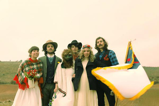 Hola A Todo El Mundo son un sexteto, y son de Madrid. Una formación tan poco habitual no podía hacer música habitual, y no la hacen. Su música bebe desde el folk más pop tipo Devendra Banhart hasta el más íntimo, como el de Vetiver, de quien fueron teloneros en Junio de 2008. En sus canciones, que por lo general tienden a alargarse por caminos imprevisibles, puede ocurrir de todo. Cabe la grandiosidad y cabe el lirismo, lo luminoso y lo oscuro. Así como en su directo también entran instrumentos de lo más variado: ukeleles, guitarras, bajos, xilófonos, panderetas, acordeones, pianos, violines, panderos, baterías… el caso es que esas doce manos son capaces de mucho cuando se juntan. Los que habían estado pendientes de la maqueta y de sus primeros directos ya lo sabían, ahora es cuando toca que se entere todo el mundo. Su primer disco homónimo (producido por Producciones Disonantes y editado por Promociones sin Fronteras) ya está en tiendas y lo presentan hoy en la sala Sol de Madrid. No tienes excusa.