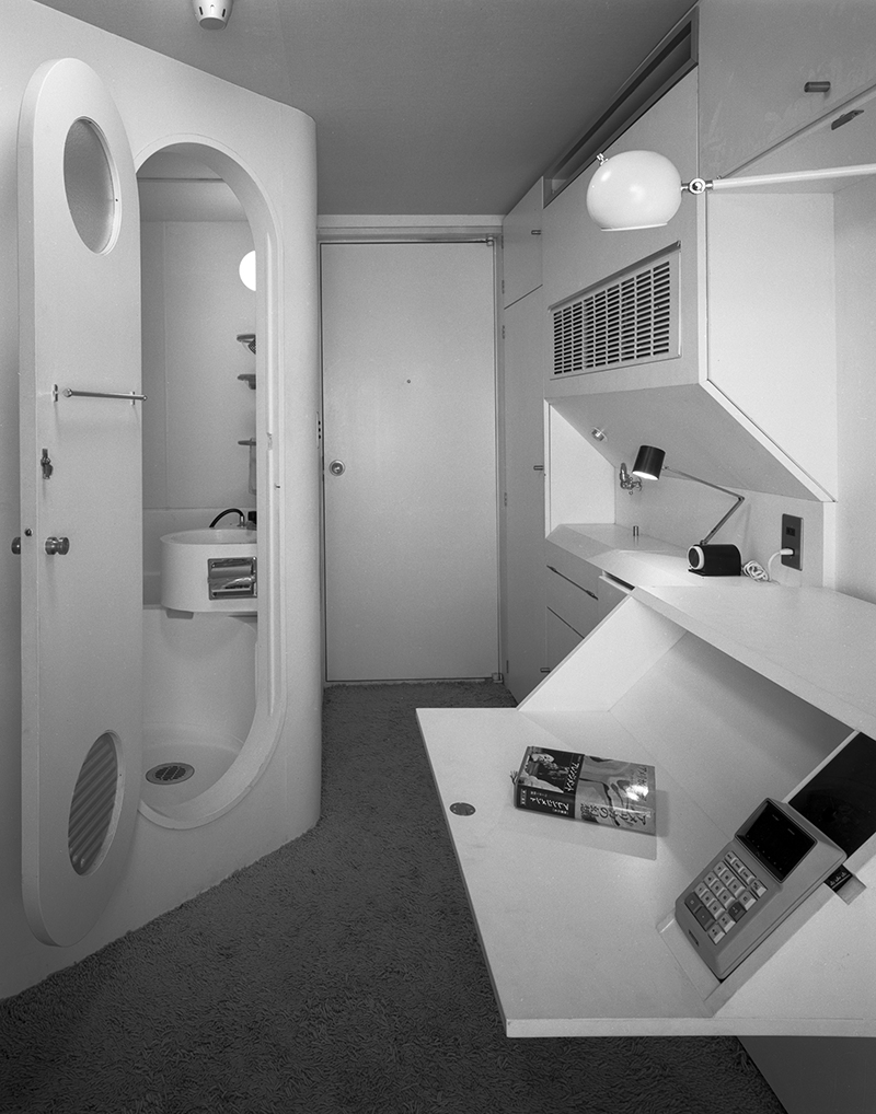 Interior de Capsule Tower en Tokyo, proyecto expuesto en Home Design Stories, Vitra Design Museum.