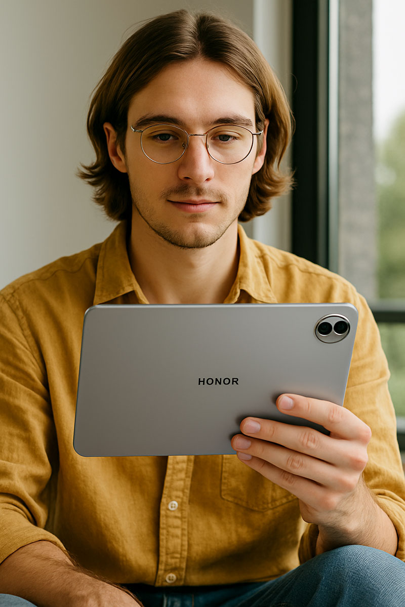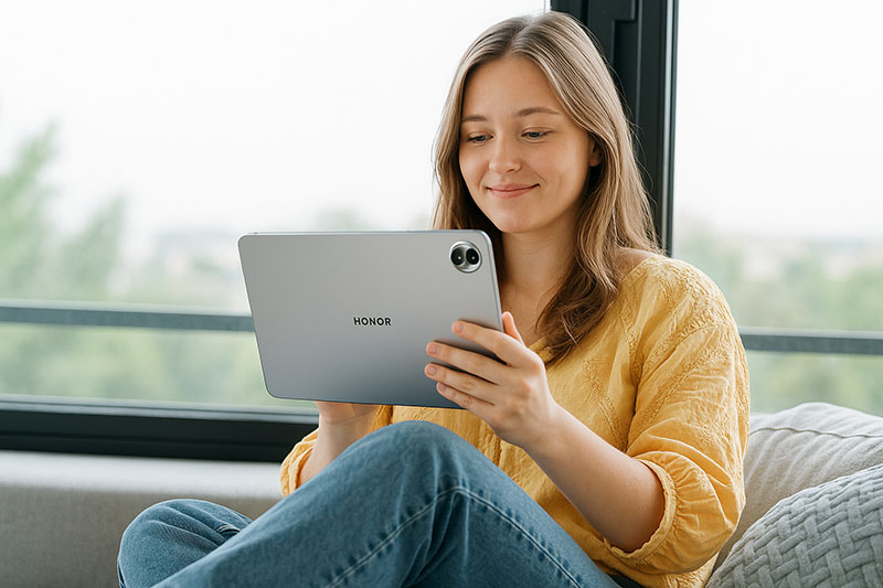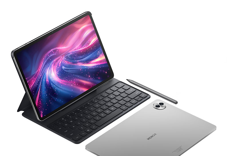 Su pantalla, de 12,1 pulgadas y 2.5K de resolución, ocupa un 88% del frontal, por lo que en funcionamiento produce un efecto inmersivo. Muestra archivos en alta definición (2560 x 1600 píxeles), utiliza más de 1.070 millones de colores y ofrece una nitidez superior a la de Full HD. Está equipada con la tecnología Eye Comfort de Honor que neutraliza el efecto de la luz azul protegiendo la visión durante periodos de uso prologado. Su brillo va desde tan solo 0.1 nits hasta 500 nits, un rango mejorado con IA. Además, la tasa de refresco dinámica de 120 Hz garantiza desplazamientos suaves, animaciones fluidas y una respuesta rápida en juegos con procesos gráficos complejos.