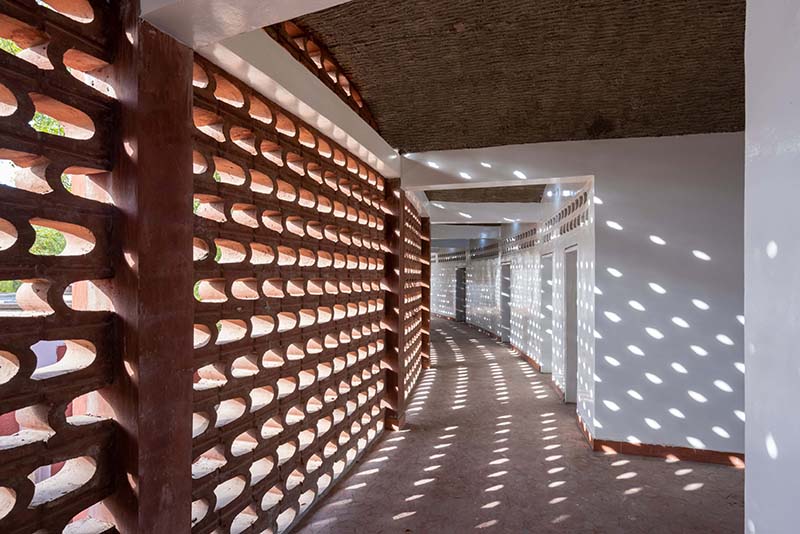 El diseño de Herz incluye varias innovaciones climáticas pasivas con el fin de afrontar los retos que plantea el extremo clima local y ayudar a prescindir de aire acondicionado. El reducido ancho del edificio, de tan solo siete metros, permite ventilar y mantener una temperatura agradable en todas las habitaciones de forma natural gracias a la circulación del aire. Asimismo, el empleo de celosía de ladrillo estilo mashrabiya con aperturas, tiene la ventaja de impedir el paso de la luz del sol y favorecer la circulación del aire. A su vez, otorga al hospital un característico motivo visual recurrente y un vistoso juego de luces y sombras. El techo de la ampliación está cubierto por un segundo techo que protege de la luz directa del sol y crea un efecto chimenea que extrae hacia arriba el calor de las habitaciones de la planta baja.
