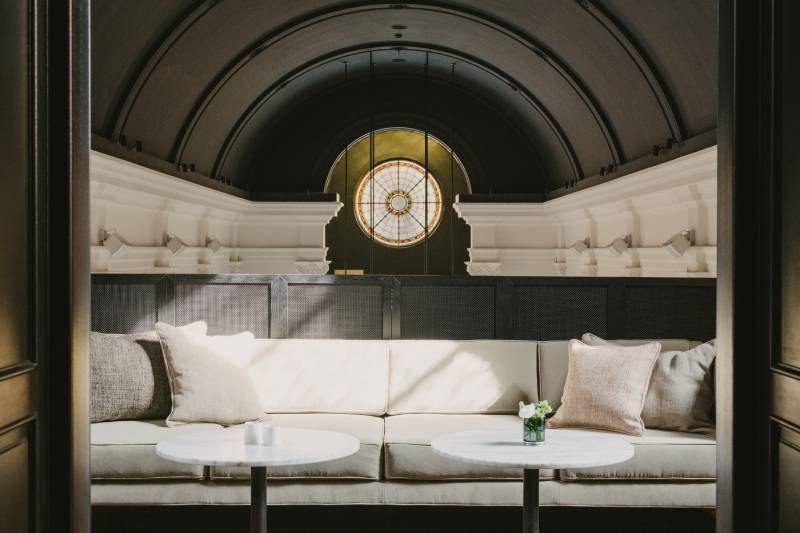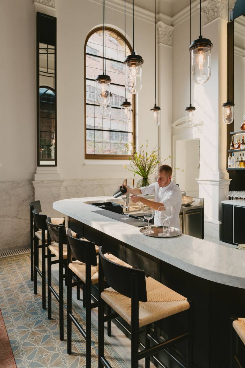 Estacional, local e innovadora. Así es la oferta gastronómica del nuevo restaurante del Hotel August que se aloja en la antigua capilla. Al mando de los fogones se encuentra el prestigioso chef Nick Bril, jefe de cocina del establecimiento de dos estrellas Michelin The Jane, restaurante próximo al hotel. Con un menú degustación que obedece (y celebra) el producto de temporada, Nick Bril invita a probar suculentas opciones como el gazpacho verde, lubina cruda o espárragos blancos. Un cóctel artesanal en el jardín o un aperitivo en el bar son también parte de la religión de August.