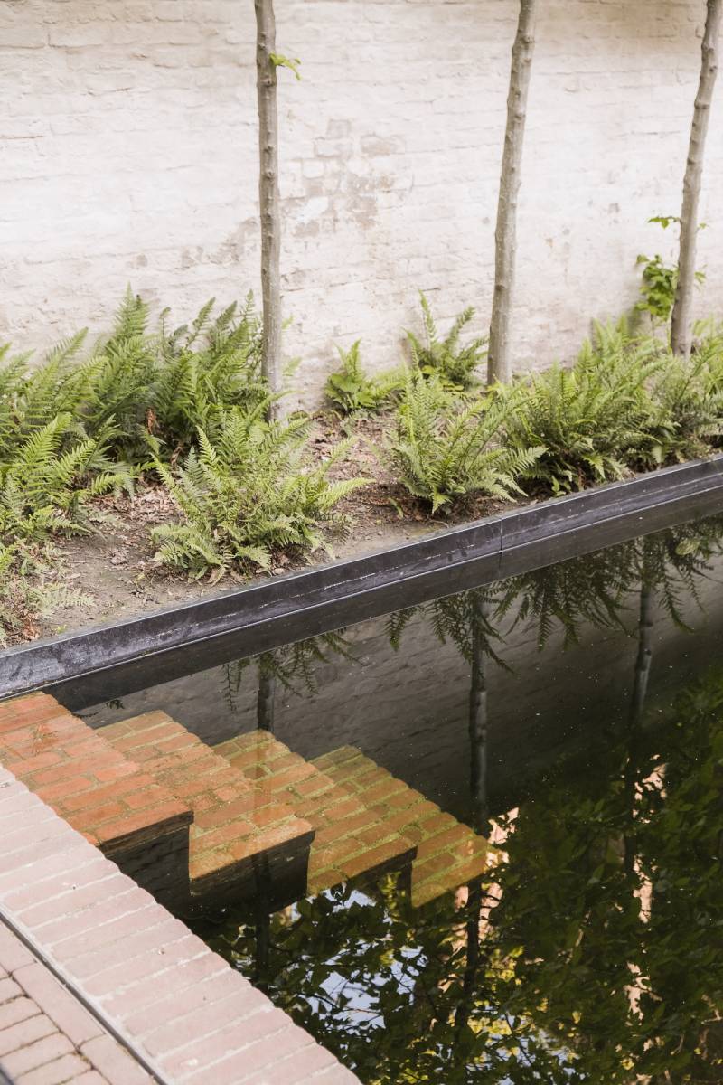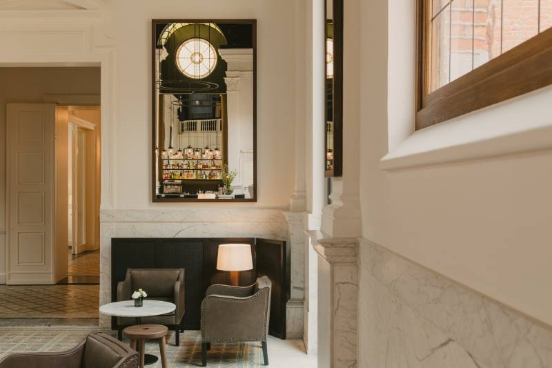 Es en ese instante en el que se atraviesa la distintiva entrada con dosel de acero negro mate, cuando uno percibe de forma palpable el alma y el sentimiento de Van Duysen. La directiva de no ser demasiado audaz ni exigir demasiado del espacio da como resultado un refugio reinventado de tranquila armonía. Van Duysen explica, “mi estrategia general para convertir esta joya escondida y sus jardines en un hotel fue ante todo respetar el ADN histórico del lugar y de su entorno. Todo ello a través de una cuidadosa restauración de su esplendor neoclásico, mediante la adición de elementos arquitectónicos contemporáneos y mejorando las instalaciones a su nueva función de hotel moderno.”