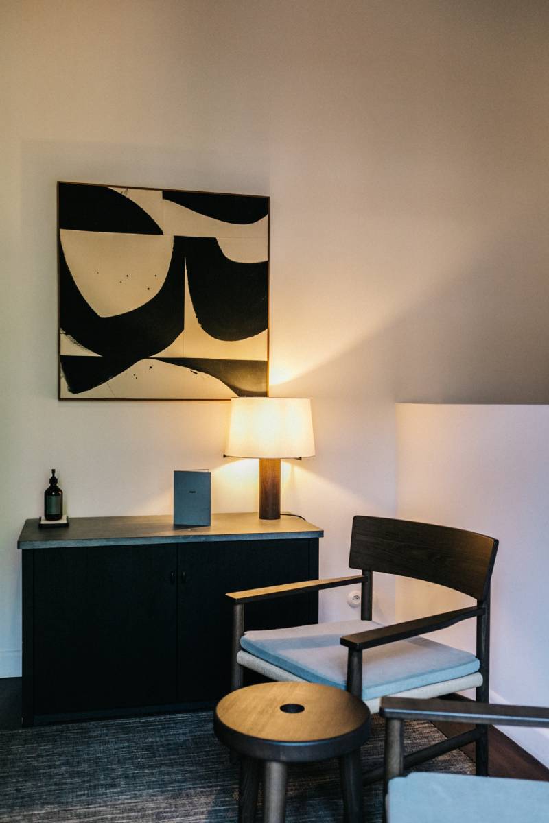 El interior rinde homenaje al estilo de vida del convento. Se conjuga en consonancia con las características existentes, reviviendo la madera original de color verde grisáceo y las molduras blancas, a la vez que introduce elementos modernos en color negro. El resultado es un santuario contemporáneo que se disfruta gracias a esa compostura lograda, tanto por su herencia restaurada como por su diseño moderno y silencioso.