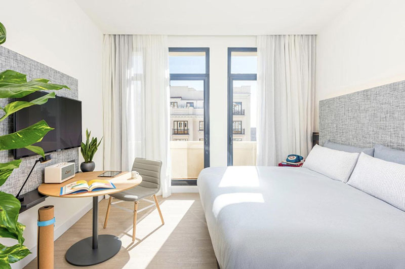 Desde el Hotel Innside Madrid Gran Vía se puede trabajar (disponen de mesas comunales para reuniones), pasar un rato divertido y descansar. Por esto, todos los viajeros, ya vayan por ocio o negocio, pueden encontrar una propuesta atractiva tanto en servicios como en mobiliario. Un espacio lifestyle de diseño contemporáneo que se adapta a la personalidad del huésped con detalles a medida.