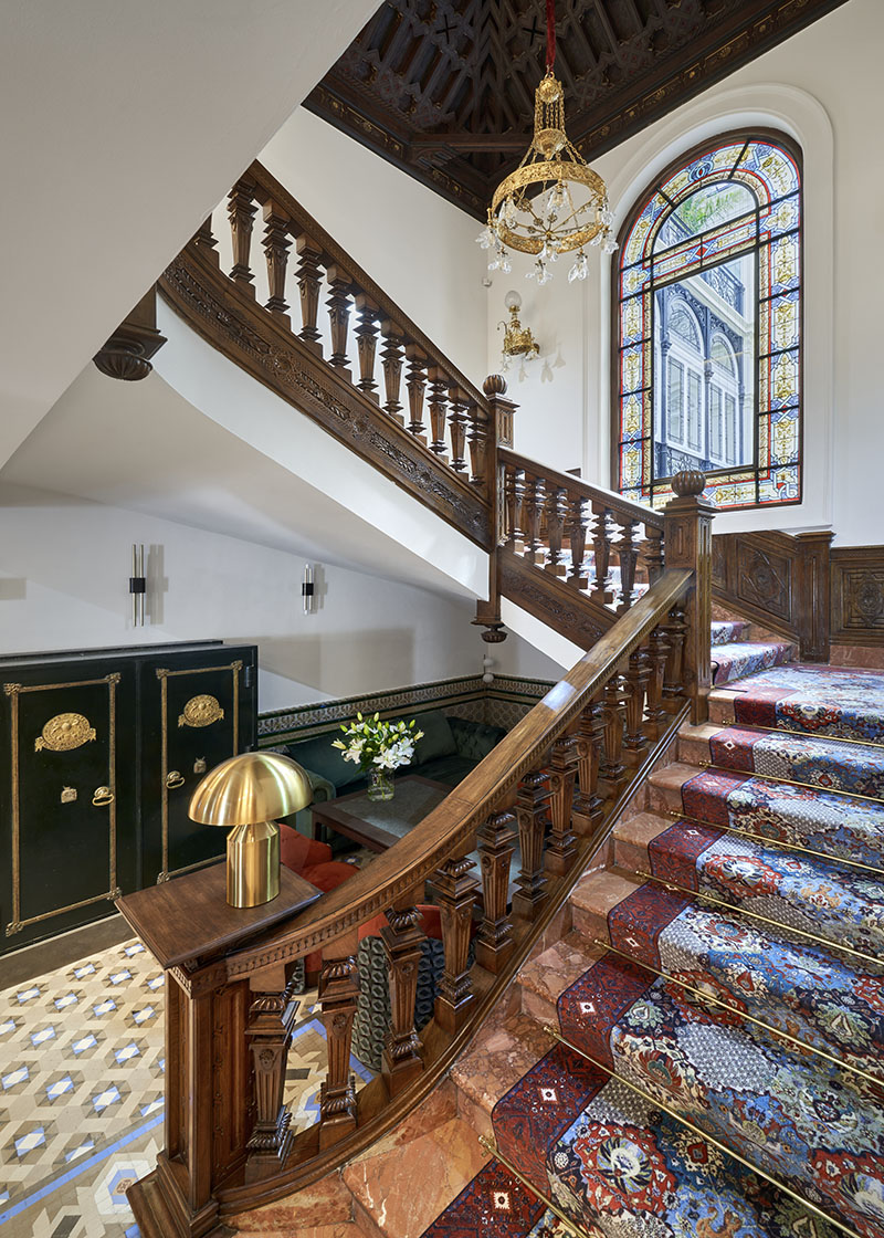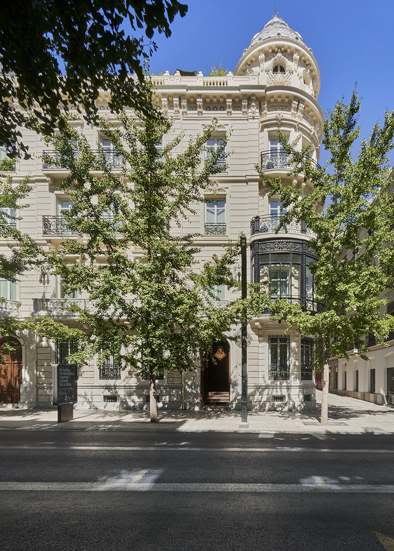 El pasado mes de junio abría sus puertas el hotel Palacio de Gran Vía, un Royal Hideaway Hotel 5* GL., después de llevar a cabo un extenso proyecto de rehabilitación y restauración en uno de los edificios más destacados de la Gran Vía de Colón, en el centro histórico de Granada. La propiedad, perteneciente a la familia Poyatos, data de 1905 y fue diseñada por el arquitecto Juan Montserrat Vergés, conocido por sus obras representativas del modernismo en Granada. El edificio, que previamente albergó la sede de la Banca Rodríguez Acosta, ha sido restaurado bajo la dirección del arquitecto Carlos Quintanilla, preservando la esencia original.