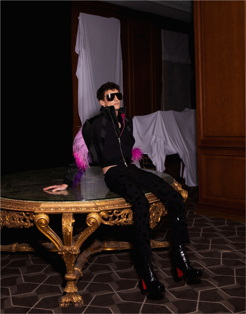 Cazadora y pantalón Guillem Rodríguez + Botas Stage Starboot Christian Louboutin + Gafas Alexander McQueen