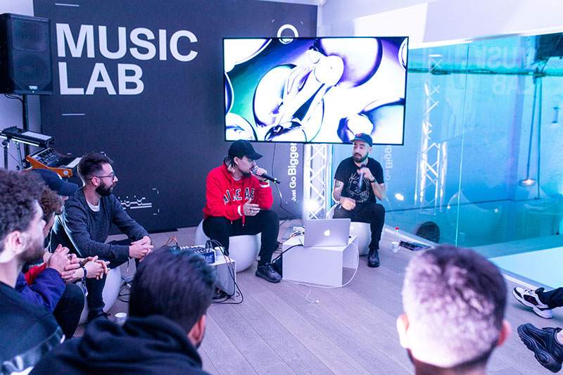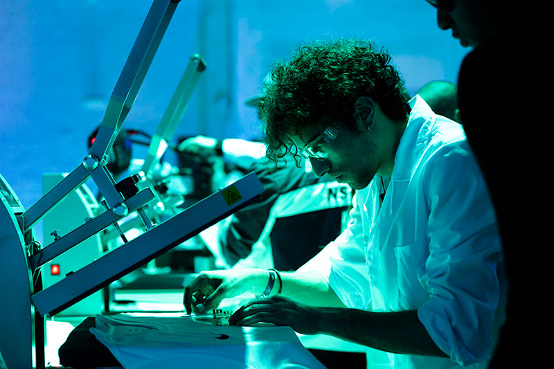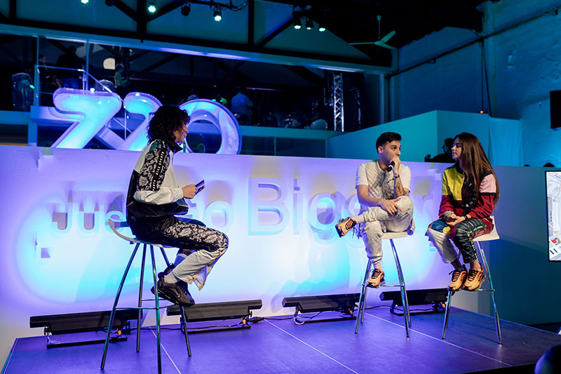 El evento abría sus puertas a las 17h, con un cartel incomparable: Gravesen y Kolderiu de Dux Garming, fueron los encargados de abrir los talks de Just go Bigger, quienes nos dieron una clase magistral de FIFA y unos consejos muy valorables para llegar hasta donde uno mismo se proponga con esfuerzo y mucha constancia. Les siguieron Sebas y Daniela de The Real Kidz, que después de explicarnos sus inicios y sus sacrificios nos enseñaron lo mejor que saben hacer, bailar y quienes levantaron a todo el público de House of Air terminando con una mini coreografía improvisada. El siguiente invitado fue Dellafuente, quien nos pidió que no atendiéramos a los teléfonos y estuviéramos en el aquí y en el ahora olvidando (lo que parece hoy en día ya imposible, los móviles) y nos invitó a disfrutar de un vídeo que nos había preparado para ver su recorrido en sus 168 canciones que tiene hoy en día a sus espaldas, dejándonos claro que su evolución es imparable. Por último, fue el turno de Andrei Warren junto a los diseñadores de Shoop explicándonos como se unieron sus caminos, y que después de enseñarnos parte de sus trabajos terminamos haciendo con ellos un workshop de estampación con sus logos sobre unas camis nikes que quedaron con un resultado muy top. Como colofón final, disfrutamos de el directo de Dellafuente en la fiesta Fuego posterior al evento en la sala RAZZMATAZZ, donde no dejamos de bailar sobre nuestras Nike Air Max 720.