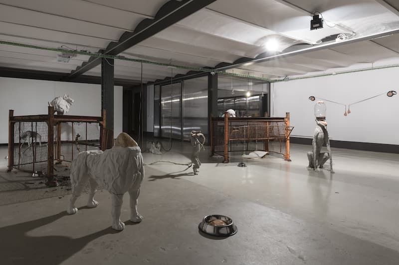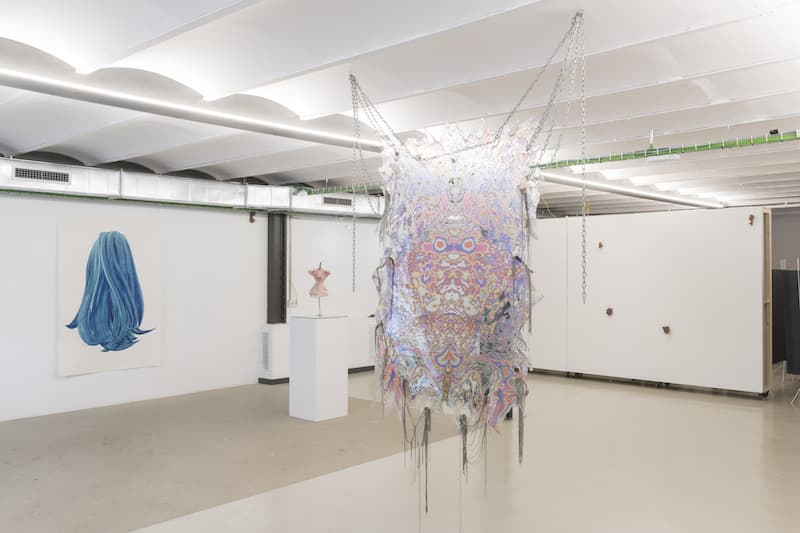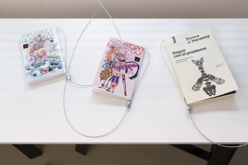Detalle de instalación de la expo colectiva “Mad Chimera World” en el espacio de Barcelona. Foto: Roberto Ruiz