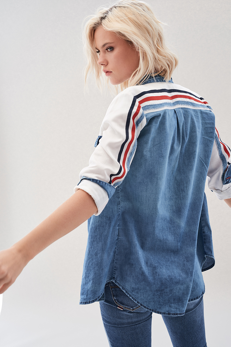 En está colección cápsula los colores que predominan son el rojo y el azul, además incorpora el primer logo de la marca y alguna de sus prendas denim más icónicas como el modelo One, los jeans unisex que tuvieron un gran éxito en los 2000.