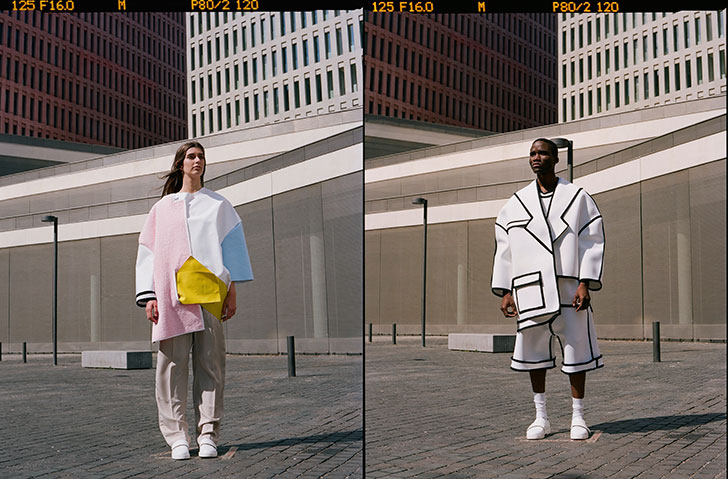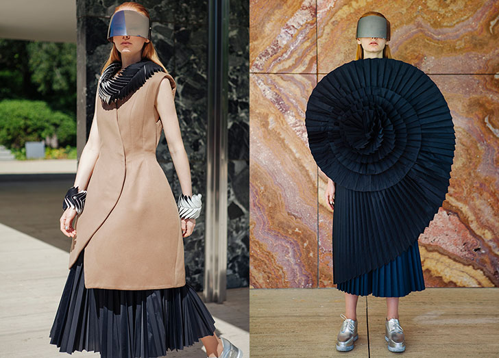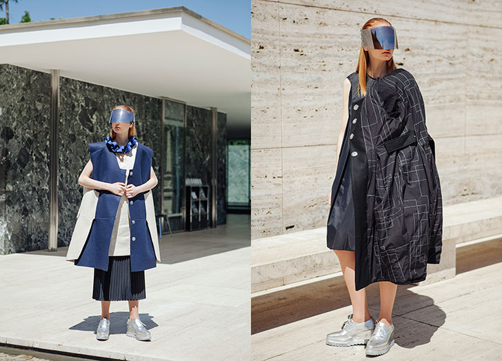 La colección Farkitecture surge de la fusión entre moda y arquitectura. La diseñadora se inspira en formas estructurales y figuras geométricas de estilo moderno y estética futurista. Obras de reconocidos artistas han servido como referente para la creación de unos diseños innovadores, elegantes y atemporales. Las prendas de volúmenes y formas complejas crean contraste entre lo clásico y lo moderno a partir de la combinación de tejidos tradicionales como el cashemere a los más técnicos como el nylon y pvc recubierto de algodón. Destacan los detalles y acabados de cada una de las piezas, así como la mezcla de materiales livianos y pesados. La paleta de colores juega con detalles metálicos, siendo el negro, el azul, el beige y el marrón los protagonistas en los diseños.