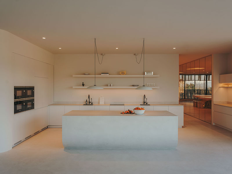 La cocina se concibió como un espacio para reunirse, un lugar sereno que evoca la calidez del hogar y fomenta la interacción entre las personas. Con una atmósfera doméstica y mediterránea, invita al descanso y a la conversación.
