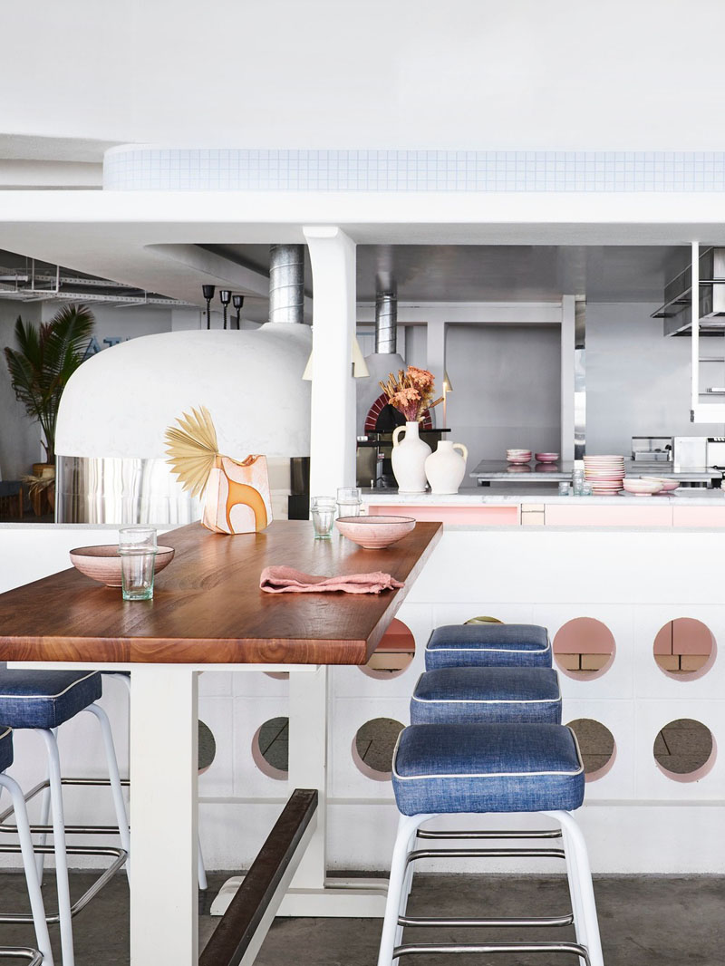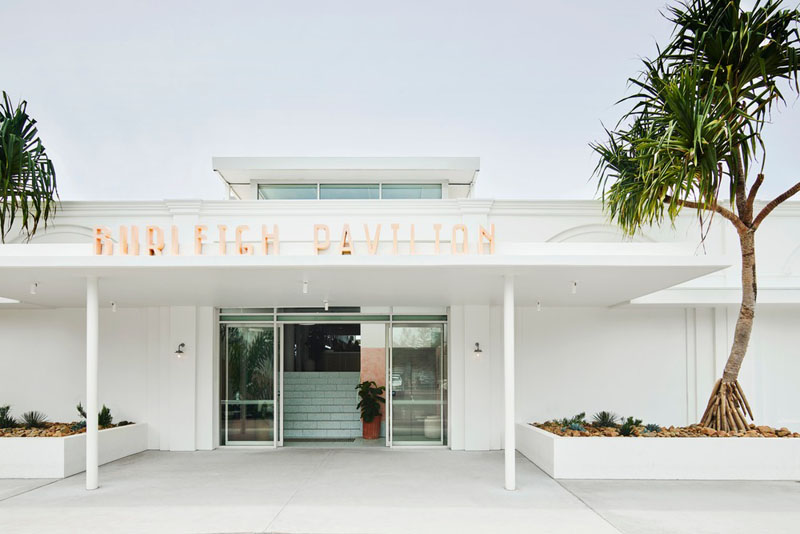 El proyecto está dividido en tres espacios: un restaurante a la carta (“The Tropic”), una brasserie costera (“The Pavilion”) y un bar de playa principal al aire libre. El cliente quería que el proyecto evocara recuerdos de sus vacaciones de infancia en Burleigh Heads, una nostalgia de playa de la Costa Dorada de los 70.