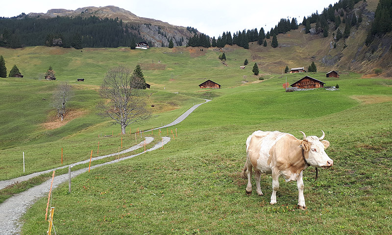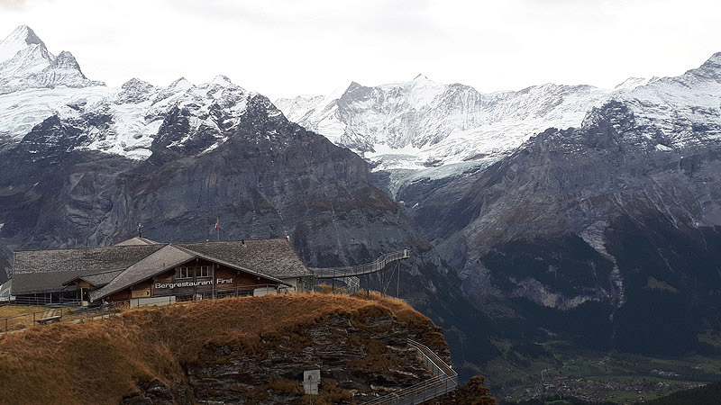 Desayunamos y nos dirigimos a la estación donde nos espera nuestra guía Annemarie Sterchi, a las 8,30 cogemos un telecabina con destino a First, punto de partida de excursiones como, por ejemplo, al lago Bachalp y a Schynige Platte, pero lo que nosotros vamos a hacer es una serie de actividades de divertimento en un entorno fabuloso.