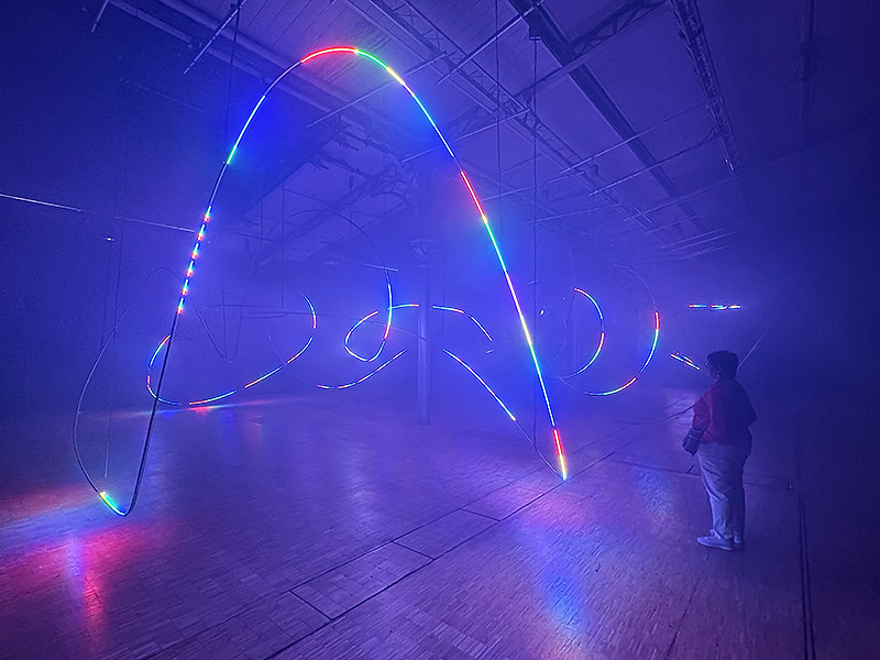 El itinerario culmina con Carnaval, una pieza exuberante de Collectif Scale que une luz y música en una coreografía visual que nos despide del recinto en estado de trance lúdico. La banda sonora de Lucie Antunes subraya la dimensión celebratoria de este fresco digital danzante.