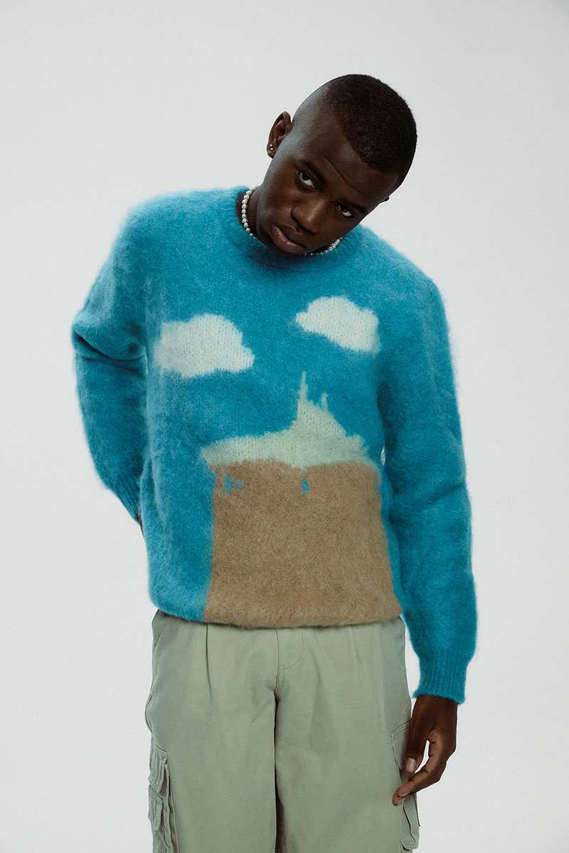 En esta nueva colección de Iscariot 12 FW22, presentan un mayor numero de prendas con siluetas más desarrolladas que en sus lanzamientos anteriores. En lugar de los clásicos hoodies, Iván apuesta por nuevos items como el jersey de mohair con las Torres de Colón y su emblemático enchufe o la chaqueta vaquera con un print del Aquelarre de Goya.